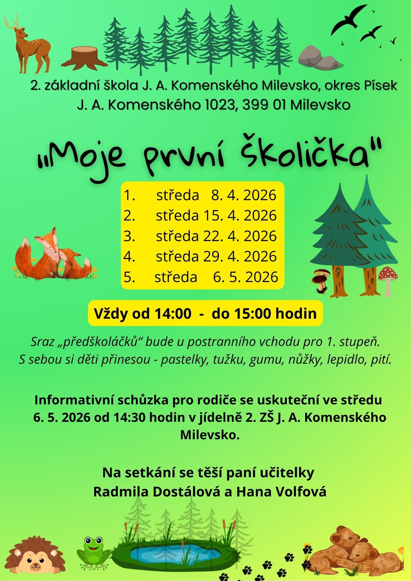 Elektronická registrace k zápisu bude spuštěna 5.1.2026 ( viz Informace k zápisu).