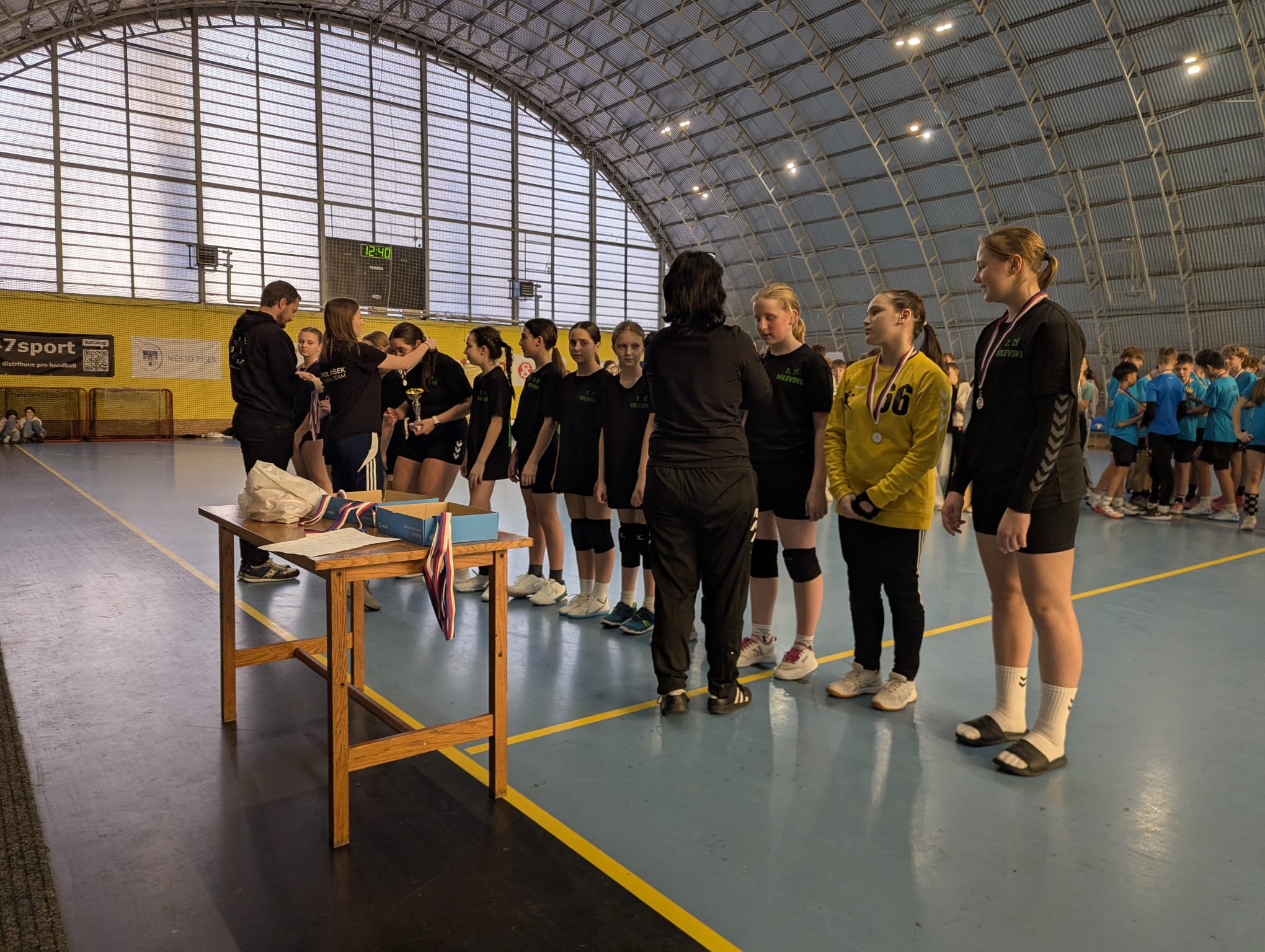 Ve čtvrtek 5. 3. vyrazily dívky z pátých až sedmých tříd na okresní kolo v házené do písecké sportovní haly. Když vyhrály zápasy v základní skupině, čekalo je utkání o postup do krajského kola. Tento zápas zvládly holky s přehledem a nad týmem 1. ZŠ Milevsko vyhrály. Zaslouženě si tak od organizátorů turnaje převzaly zlaté medaile a pohár za 1. místo a postoupily do krajského kola. Moc jim děkujeme za výbornou reprezentaci naší školy.